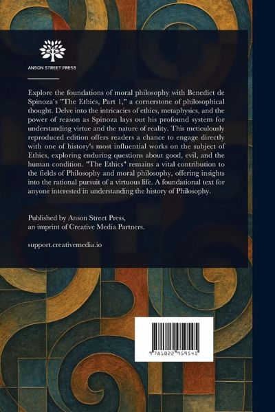 Explore the foundations of moral philosophy with Benedict de Spinoza's "The Ethics, Part 1," a cornerstone of philosophical thought. Delve into the intricacies of ethics, metaphysics, and the power of reason as Spinoza lays out his profound system for understanding virtue and the nature of reality. This meticulously reproduced edition offers readers a chance to engage directly with one of history's most influential works on the subject of Ethics, exploring enduring questions about good, evil, and the human condition. "The Ethics" remains a vital contribution to the fields of Philosophy and moral philosophy, offering insights into the rational pursuit of a virtuous life. A foundational text for anyone interested in understanding the history of Philosophy. This work has been selected by scholars as being culturally important, and is part of the knowledge base of civilization as we know it. This work is in the public domain in the United States of America, and possibly other nations. Within the United States, you may freely copy and distribute this work, as no entity (individual or corporate) has a copyright on the body of the work. Scholars believe, and we concur, that this work is important enough to be preserved, reproduced, and made generally available to the public. We appreciate your support of the preservation process, and thank you for being an important part of keeping this knowledge alive and relevant.