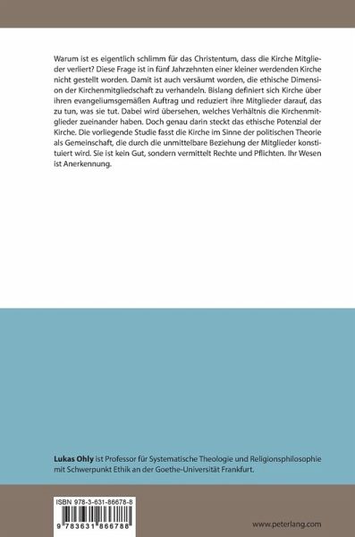Warum ist es eigentlich schlimm für das Christentum, dass die Kirche Mitglieder verliert? Diese Frage ist in fünf Jahrzehnten einer kleiner werdenden Kirche nicht gestellt worden. Damit ist auch versäumt worden, die ethische Dimension der Kirchenmitgliedschaft zu verhandeln. Bislang definiert sich Kirche über ihren evangeliumsgemäßen Auftrag und reduziert ihre Mitglieder darauf, das zu tun, was sie tut. Dabei wird übersehen, welches Verhältnis die Kirchenmitglieder zueinander haben. Doch genau darin steckt das ethische Potenzial der Kirche. Die vorliegende Studie fasst die Kirche im Sinne der politischen Theorie als Gemeinschaft, die durch die unmittelbare Beziehung der Mitglieder konstituiert wird. Sie ist kein Gut, sondern vermittelt Rechte und Pflichten. Ihr Wesen ist Anerkennung.
