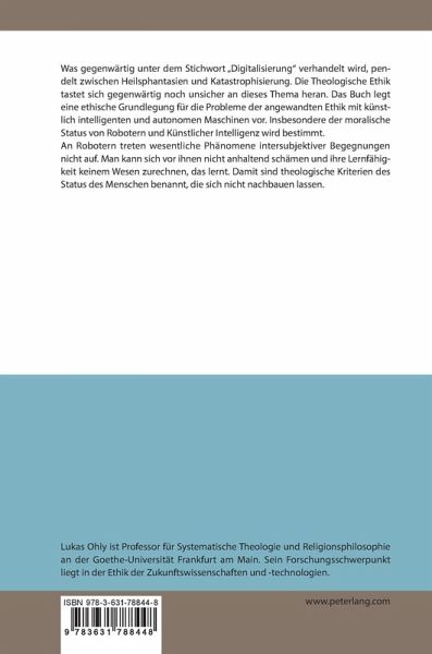 Was gegenwärtig unter dem Stichwort "Digitalisierung" verhandelt wird, pendelt zwischen Heilsphantasien und Katastrophisierung. Die Theologische Ethik tastet sich gegenwärtig noch unsicher an dieses Thema heran. Das Buch legt eine ethische Grundlegung für die Probleme der angewandten Ethik mit künstlich intelligenten und autonomen Maschinen vor. Insbesondere der moralische Status von Robotern und Künstlicher Intelligenz wird bestimmt.