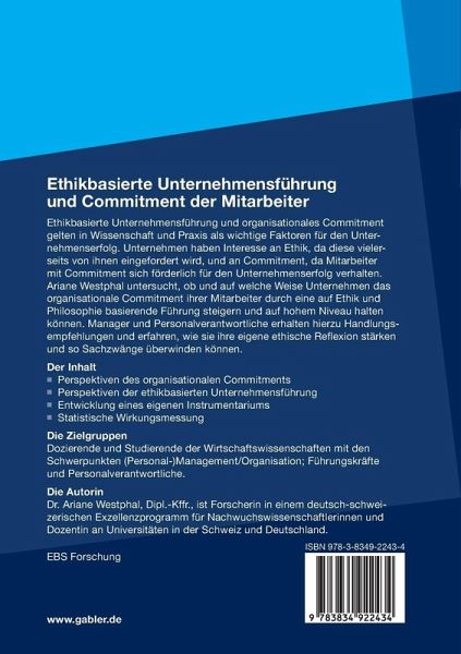 Ethikbasierte Unternehmensführung und organisationales Commitment gelten in Wissenschaft und Praxis als wichtige Faktoren für den Unternehmenserfolg. Unternehmen haben Interesse an Ethik, da diese vielerseits von ihnen eingefordert wird, und an Commitment, da Mitarbeiter mit Commitment sich förderlich für den Unternehmenserfolg verhalten. Ariane Westphal untersucht, ob und auf welche Weise Unternehmen das organisationale Commitment ihrer Mitarbeiter durch eine auf Ethik und Philosophie basierende Führung steigern und auf hohem Niveau halten können. Manager und Personalverantwortliche erhalten hierzu Handlungsempfehlungen und erfahren, wie sie ihre eigene ethische Reflexion stärken und so Sachzwänge überwinden können.