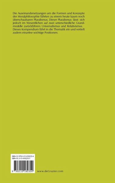 Das seit einigen Jahren wachsende Interesse an Fragen der philosophischen Ethik scheint ungebrochen. Dabei ergeben sich durch die Auseinandersetzungen mit den unterschiedlichen Formen und Konzepten der Moralphilosophie Spannungen, aus denen ein heute kaum noch überschaubarer Pluralismus der Ethiken hervorgegangen ist. Dieser Pluralismus lässt sich jedoch im wesentlichen auf zwei unterschiedliche Begründungskonzepte zurückführen: Universalismus und Relativismus. Der von Heidemann und Engelhard vorgelegte Band untersucht die beiden Konzepte sowohl in philosophiegeschichtlicher als auch in systematischer Hinsicht.