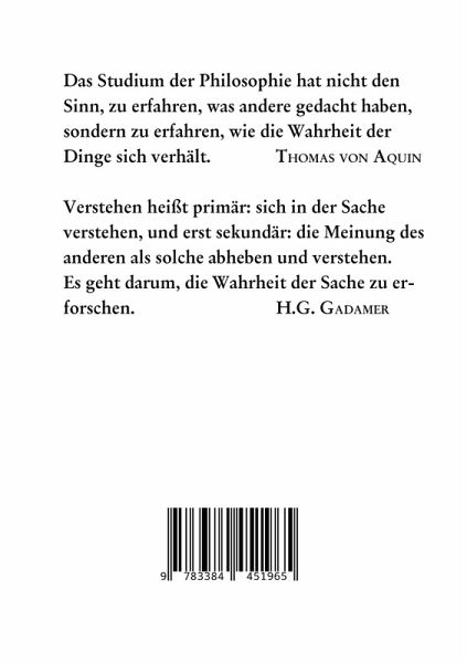 Im Titelaufsatz geht es um die Frage, ob wir verpflichtet sind, ethische Normen zu befolgen. Thomas von Aquin antwortet darauf mit der Lehre vom sittlicchen Naturgesetz, das jeder Mensch erkennen kann und jeden Menschen verpflichtet. Im zweiten Aufsatz wird Bertrand Russells Kritik an Thomas von Aquin referiert, darunter zwei logische Einwände gegen den Aqudinaten, die es zu beachten gilt. Der dritte Aufsatz ist eine kurze Hinführung zu Johannes Duns Scotus, diskutiert wird seine transzendentale Wissenschaft als Vorstufe der modernen Transzentdentalphiiosophie. Der vierte Aufsatz ist eine Besprechung der Geschichte der Philosophie von Jürgen Habermas.