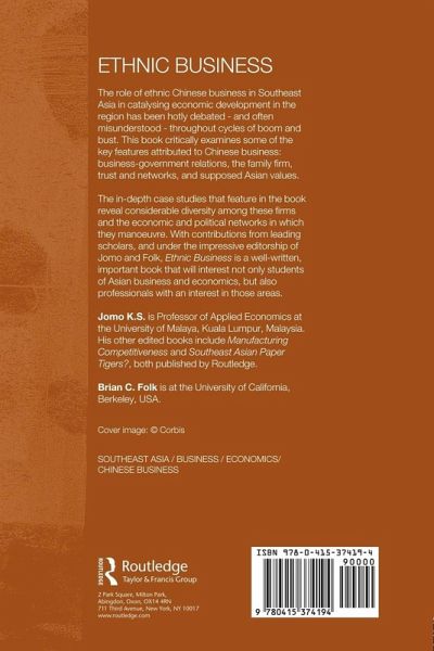 The role of ethnic Chinese business in Southeast Asia in catalyzing economic development has been hotly debated - and often misunderstood - throughout cycles of boom and bust. This book critically examines some of the key features attributed to Chinese business: business-government relations, the family firm, trust and networks, and supposed 'Asian' values. The in-depth case studies that feature in the book reveal considerable diversity among these firms and the economic and political networks in which they manoeuvre. With contributions from leading scholars and under the impressive editorship of Jomo and Folk, Ethnic Business is a well-written, important contribution to not only students of Asian business and economics, but also professionals with an interest in those areas.
