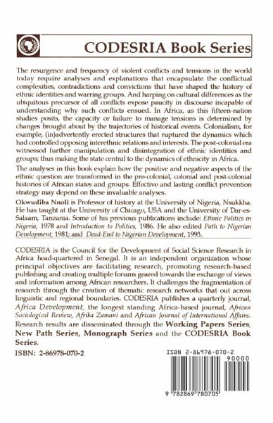 The resurgence and frequency of violent conflicts and tensions require analyses taking account of the factors that have shaped the history of ethnic identities and warring groups. Citing cultural differences as the ubiquitous precursor hinders such understanding. This fifteen-nation study of conflicts in Africa shows that the capacity or failure to manage such conflicts is determined by changes brought about by the trajectories of historical events. Colonialism erected structures that ruptured the dynamics which had controlled opposing inter-ethnic relations and interests. The post-colonial era witnessed further manipulation and disintegration of ethnic identities and groups, thus making the state central to the dynamics of ethnicity in Africa. The studies book explain how the positive and negative aspects are transformed in the pre-colonial, colonial and post-colonial histories of African states and groups.
