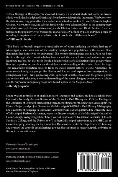 Contributions by Linda Pierce Allen, Carl L. Bankston III, Barbara Carpenter, Milburn J. Crowe, Vy Thuc Dao, Bridget Anne Hayden, Joyce Marie Jackson, Emily Erwin Jones, Tom Mould, Frieda Quon, Celeste Ray, Stuart Rockoff, Devparna Roy, Aimée L. Schmidt, James Thomas, Shana Walton, Lola Williamson, and Amy L. Young Throughout its history, Mississippi has seen a small, steady stream of immigrants, and those identities--sometimes submerged, sometimes hidden--have helped shape the state in important ways. Amid renewed interest in identity, the Mississippi Humanities Council has commissioned a companion volume to its earlier book that studied ethnicity in the state from the period 1500-1900. This new book, Ethnic Heritage in Mississippi: The Twentieth Century, offers stories of immigrants overcoming obstacles, immigrants newly arrived, and long-settled groups witnessing a revitalized claim to membership. The book examines twentieth-century immigration trends, explores the reemergence of ethnic identity, and undertakes case studies of current ethnic groups. Some of the groups featured in the volume include Chinese, Latino, Lebanese, Jewish, Filipino, South Asian, and Vietnamese communities. The book also examines Biloxi as a city that has long attracted a diverse population and takes a look at the growth in identity affiliation among people of European descent. The book is funded in part by a "We the People" grant from the National Endowment for the Humanities.