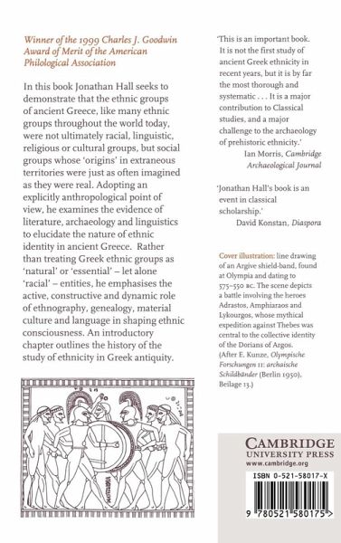 In this book Jonathan Hall seeks to demonstrate that the ethnic groups of ancient Greece, like many ethnic groups throughout the world today, were not ultimately racial, linguistic, religious or cultural groups, but social groups whose 'origins' in extraneous territories were just as often imagined as they were real. Adopting an explicitly anthropological point of view, he examines the evidence of literature, archaeology and linguistics to elucidate the nature of ethnic identity in ancient Greece. Rather than treating Greek ethnic groups as 'natural' or 'essential' - let alone 'racial' - entities, he emphasises the active, constructive and dynamic role of ethnography, genealogy, material culture and language in shaping ethnic consciousness. An introductory chapter outlines the history of the study of ethnicity in Greek antiquity.