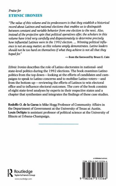 This book describes the role of Latino electorates in national- and state-level politics during the 1992 elections, looking at the efforts of candidates and campaigns to speak to Latino concerns and reviewing the efforts of Latinos to win electoral office and to influence electoral outcomes.