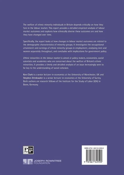 The welfare of ethnic minority individuals in Britain depends critically on how they fare in the labor market. This report provides a detailed empirical analysis of labor market outcomes, and explores how ethnically diverse these outcomes are and how they have changed over time. Using individual-level data from the UK Census and Labour Force Survey, statistical models of employment and self-employment outcomes are estimated. The report looks at how changes in labor market outcomes are related to the demographic characteristics of minority groups including their age structure, educational qualifications, religious affiliation, and patterns of residential location. It also investigates the occupational attainment and earnings of ethnic minority groups in employment. The report analyzes men and women separately, emphasizing the different factors driving labor market behavior for each gender, and it presents implications of the research for government policy towards ethnic minorities in t