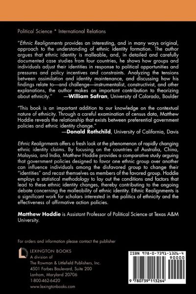 Ethnic Realignments offers a fresh look at the phenomenon of rapidly changing ethnic identity claims. By focusing on the countries of Australia, China, Malaysia, and India, Matthew Hoddie provides a comparative study arguing that government policies designed to favor one ethnic group over another can influence individuals among the disfavored group to change their 'identities' and recast themselves as members of the favored group.