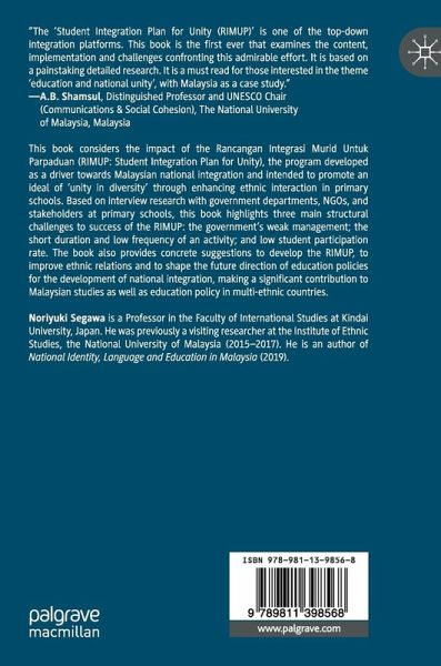 This book considers the impact of the Rancangan Integrasi Murid Untuk Parpaduan (RIMUP: Student Integration Plan for Unity), the program developed as a driver towards Malaysian national integration and intended to promote an ideal of 'unity in diversity' through enhancing ethnic interaction in primary schools. Based on interview research with government departments, NGOs, and stakeholders at primary schools, this book highlights three main structural challenges to success of the RIMUP: the government's weak management; the short duration and low frequency of an activity; and low student participation rate. The book also provides concrete suggestions to develop the RIMUP, to improve ethnic relations and to shape the future direction of education policies for the development of national integration, making a significant contribution to Malaysian studies as well as education policy in multi-ethnic countries.