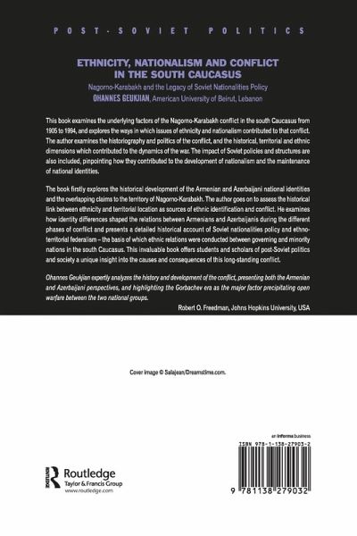 This book examines the underlying factors of the Nagorno-Karabakh conflict in the South Caucasus from 1905 to 1994, and explores the ways in which issues of ethnicity and nationalism contributed to that conflict. The author examines the historiography and politics of the conflict, and the historical, territorial and ethnic dimensions which contributed to the dynamics of the war. The impact of Soviet policies and structures are also included, pinpointing how they contributed to the development of nationalism and the maintenance of national identities. The book firstly explores the historical development of the Armenian and Azerbaijani national identities and the overlapping claims to the territory of Nagorno-Karabakh. The author goes on to assess the historical link between ethnicity and territorial location as sources of ethnic identification and conflict. He examines how identity differences shaped the relationsa between Armenians and Azerbaijanis during the different phases of conflict and presents a detailed historical account of Soviet nationalities policy and ethno-territorial federalism - the basis of which ethnic relations were conducted between governing and minority nations in the south Caucasus. This invaluable book offers students and scholars of post-Soviet politics and society a unique insight into the causes and consequences of this long-standing conflict.