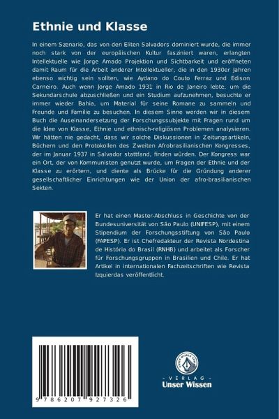 In einem Szenario, das von den Eliten Salvadors dominiert wurde, die immer noch stark von der europäischen Kultur fasziniert waren, erlangten Intellektuelle wie Jorge Amado Projektion und Sichtbarkeit und eröffneten damit Raum für die Arbeit anderer Intellektueller, die in den 1930er Jahren ebenso wichtig sein sollten, wie Aydano do Couto Ferraz und Edison Carneiro. Auch wenn Jorge Amado 1931 in Rio de Janeiro lebte, um die Sekundarschule abzuschließen und ein Studium aufzunehmen, besuchte er immer wieder Bahia, um Material für seine Romane zu sammeln und Freunde und Familie zu besuchen. In diesem Sinne werden wir in diesem Buch die Auseinandersetzung der Forschungssubjekte mit Fragen rund um die Idee von Klasse, Ethnie und ethnisch-religiösen Problemen analysieren. Wir hätten nie gedacht, dass wir solche Diskussionen in Zeitungsartikeln, Büchern und den Protokollen des Zweiten Afrobrasilianischen Kongresses, der im Januar 1937 in Salvador stattfand, finden würden. Der Kongress war ein Ort, der von Kommunisten genutzt wurde, um Fragen der Ethnie und der Klasse zu erörtern, und diente als Brücke für die Gründung anderer gesellschaftlicher Einrichtungen wie der Union der afro-brasilianischen Sekten.