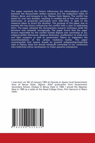 This paper examined the factors influencing the ethnoreligious conflict between the Hausa-Fulani settlers (Jasawa) and the indigenous tribes of Afizere, Beron and Anaguta in Jos, Plateau State Nigeria. The conflict has lasted for over two decades, resulting in needless loss of lives and wanton destruction of properties particularly from 2001-2010, in spite of the measures taken to arrest the situation. The purpose of this paper was to examine the key factors influencing the conflict with a view to addressing them. The paper adopted the documentary research technique while the literature was reviewed conceptually. The paper found that the major factors responsible for the conflict include dispute over ownership of Jos, indigene-settler dichotomy, religious dimension, proliferation of small arms and light weapons as well as government failure to implement the recommendations of the various mediatory bodies. The paper recommended that Jasawa should be granted indigeneship/citizenship right in Plateau State but should relinquish ownership of Jos; continuous inter-faith/inter-ethnic sensitization to foster peaceful coexistence.
