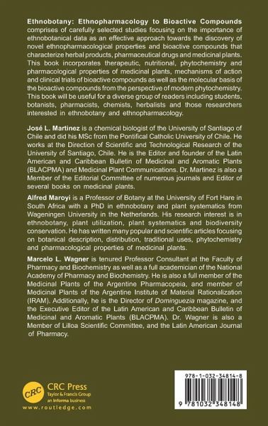 Ethnobotany: Ethnopharmacology to Bioactive Compounds comprises of carefully selected studies focusing on the importance of ethnobotanical data as an effective approach towards the discovery of novel ethnopharmacological properties and bioactive compounds that characterize herbal products, pharmaceutical drugs and medicinal plants.