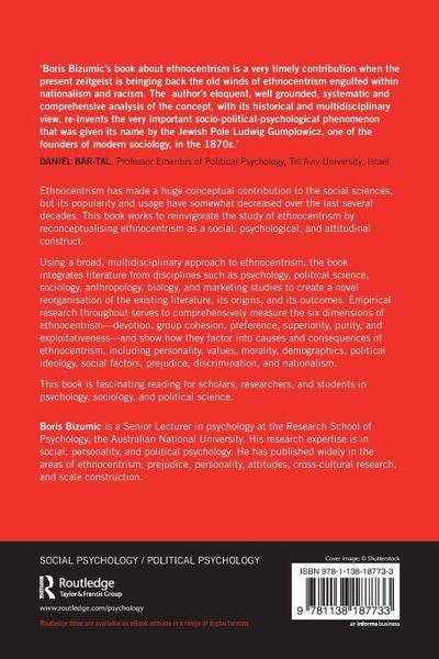 Ethnocentrism works to reinvigorate the study of ethnocentrism by reconceptualising ethnocentrism as a social, psychological, and attitudinal construct. Using a broad, multidisciplinary approach to ethnocentrism, the book integrates literature from disciplines such as psychology, political science, sociology, anthropology, biology, and marketing studies to create a novel reorganisation of the existing literature, its origins, and its outcomes. Empirical research throughout serves to comprehensively measure the six dimensions of ethnocentrism-devotion, group cohesion, preference, superiority, purity, and exploitativeness-and show how they factor into causes and consequences of ethnocentrism, including personality, values, morality, demographics, political ideology, social factors, prejudice, discrimination, and nationalism. Ethnocentrism is fascinating reading for scholars, researchers, and students in psychology, sociology, and political science.