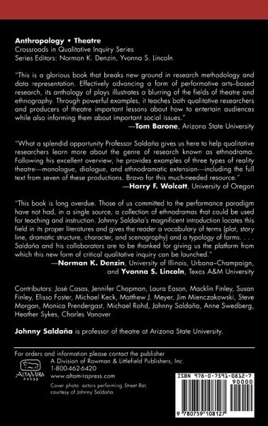 What a splendid opportunity Professor Saldana gives us here to help qualitative researchers learn more about the genre of research known as ethnodrama. Following his excellent overview, he provides examples of three types of reality theatre-monologue, dialogue, and ethnodramatic 'extension'-including the full text from seven of these productions. Bravo for this much needed resource. -- Harry F. Wolcott, Emeritus professor of education and anthropology, University of Oregon This is a glorious book that breaks new ground in research methodology and data representation. Effectively advancing a form of performative arts-based research, its anthology of plays illustrates a blurring of the fields of theatre and ethnography. Through powerful examples, it teaches both qualitative researchers and producers of theatre important lessons about how to entertain audiences while also informing them about important social issues. -- Tom Barone, Arizona State University Overall, the ethnodramas take us on a roller-coaster ride of themes, issues and emotions that leave a lasting impression... Saldana's outstanding collection will generate valuable conversation in teaching, research and theatre contexts regarding both ists contents and methods... the book will provide a valuable resource for my graduate arts-based research classes, and food for thought in my own quest for 'finding the proper balance between research as art and art as research'... Rich with examples of high quality performative arts-based research, the book is a stimulating read-instructive and entertaining, as good theatre should be. Stage Of The Art Journal ...[This] book is an important addition to the broad field of performance that extends into other disciplines and embraces more than aesthetic goals. Ethnodrama advocates for drama as a form of qualitative research that brings more voices to the public and as an occasion for valuable dialogue between actors and audiences. -- Jan Cohen-Cruz Forum: Qualitative Social Research This book is long overdue. Those of us committed to the performance paradigm have not had, in a single source, a collection of ethnodramas that could be used for teaching and instruction. Saldana's anthology gives us this book...[His] magnificent introduction locates this field in its proper literatures, gives the reader a vocabulary of terms (plot, story line, dramatic structure, character, scenography) and a typology of forms...Johnny Saldana and his collaborators are to be thanked for giving us the platform from which this new form of critical qualitative inquiry can be launched. -- Norman K. Denzin and Yvonna S. Lincoln