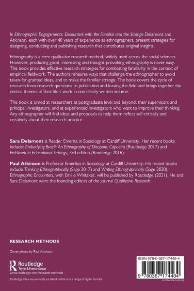 In Ethnographic Engagements: Encounters with the Familiar and the Strange Delamont and Atkinson, each with over 40 years of experience as ethnographers, present strategies for designing, conducting and publishing research that contributes original insights. Ethnography is a core qualitative research method, widely used across the social sciences. However, producing good, interesting and thought-provoking ethnography is never easy. This book provides effective research strategies for combatting familiarity in the context of empirical fieldwork. The authors rehearse ways that challenge the ethnographer to avoid taken-for-granted ideas, and to make the familiar strange. The book covers the cycle of research from research questions to publication and leaving the field and brings together the central themes of their life's work in one clearly written volume. This book is aimed at researchers at postgraduate level and beyond, their supervisors and principal investigators, and at experienced investigators who want to improve their thinking. Any ethnographer will find ideas and proposals to help them reflect self-critically and creatively about their research practice.