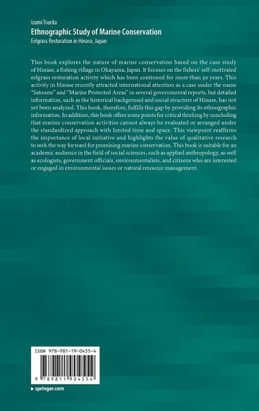 This book explores the nature of marine conservation based on the case study of Hinase, a fishing village in Okayama, Japan. It focuses on the fishers' self-motivated eelgrass restoration activity which has been continued for more than 30 years. This activity in Hinase recently attracted international attention as a case under the name "Satoumi" and "Marine Protected Areas" in several governmental reports, but detailed information, such as the historical background and social structure of Hinase, has not yet been analyzed. This book, therefore, fulfills this gap by providing its ethnographic information. In addition, this book offers some points for critical thinking by concluding that marine conservation activities cannot always be evaluated or arranged under the standardized approach with limited time and space. This viewpoint reaffirms the importance of local initiative and highlights the value of qualitative research to seek the way forward for promising marine conservation. This book is suitable for an academic audience in the field of social sciences, such as applied anthropology, as well as ecologists, government officials, environmentalists, and citizens who are interested or engaged in environmental issues or natural resource management.