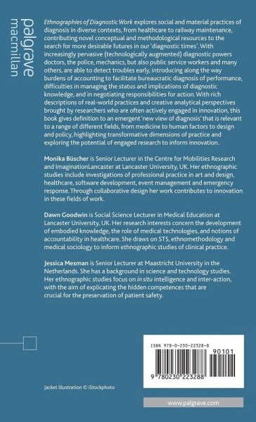 This book explores ethnographic studies of diagnostic work in diverse settings. Switching attention from product ('diagnosis') to process ('diagnosing'), it reveals the importance of collaborative, socio-material, technologically augmented practices, exploring the potential of the multi-disciplinary studies presented to inform innovation.