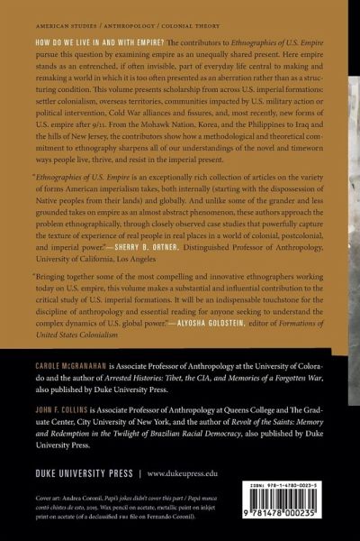 How do we live in and with empire? The contributors to Ethnographies of U.S. Empire pursue this question by examining empire as an unequally shared present. Here empire stands as an entrenched, if often invisible, part of everyday life central to making and remaking a world in which it is too often presented as an aberration rather than as a structuring condition. This volume presents scholarship from across U.S. imperial formations: settler colonialism, overseas territories, communities impacted by U.S. military action or political intervention, Cold War alliances and fissures, and, most recently, new forms of U.S. empire after 9/11. From the Mohawk Nation, Korea, and the Philippines to Iraq and the hills of New Jersey, the contributors show how a methodological and theoretical commitment to ethnography sharpens all of our understandings of the novel and timeworn ways people live, thrive, and resist in the imperial present. Contributors: Kevin K. Birth, Joe Bryan, John F. Collins, Jean Dennison, Erin Fitz-Henry, Adriana María Garriga-López, Olívia Maria Gomes da Cunha, Matthew Gutmann, Ju Hui Judy Han, J. K¿haulani Kauanui, Eleana Kim, Heonik Kwon, Soo Ah Kwon, Darryl Li, Catherine Lutz, Sunaina Maira, Carole McGranahan, Sean T. Mitchell, Jan M. Padios, Melissa Rosario, Audra Simpson, Ann Laura Stoler, Lisa Uperesa, David Vine