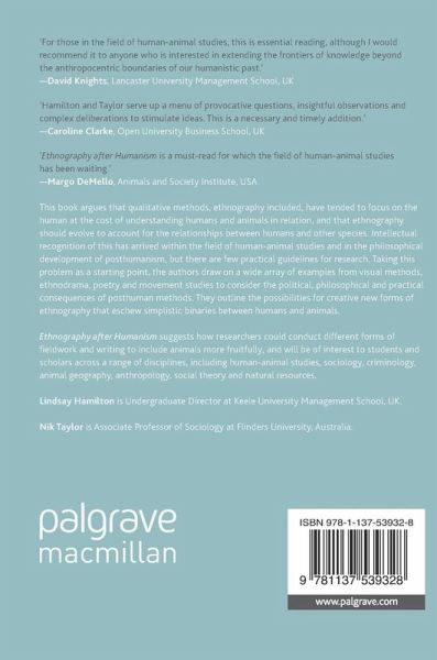 This book argues that qualitative methods, ethnography included, have tended to focus on the human at the cost of understanding humans and animals in relation, and that ethnography should evolve to account for the relationships between humans and other species. Intellectual recognition of this has arrived within the field of human-animal studies and in the philosophical development of posthumanism but there are few practical guidelines for research. Taking this problem as a starting point, the authors draw on a wide array of examples from visual methods, ethnodrama, poetry and movement studies to consider the political, philosophical and practical consequences of posthuman methods. They outline the possibilities for creative new forms of ethnography that eschew simplistic binaries between humans and animals.