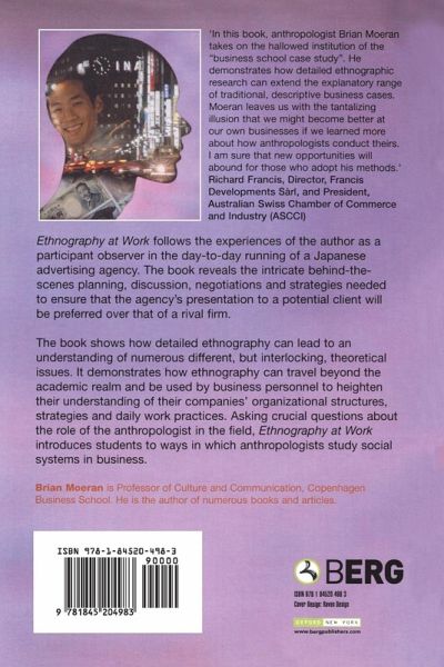 Ethnography at Work follows the experiences of the author as a participant observer in the day-to-day running of a Japanese advertising agency. The book reveals the intricate behind-the-scenes planning, discussion, negotiations and strategies needed to ensure that the agency's presentation to a potential client will be preferred over that of a rival firm. The book shows how detailed ethnography can lead to an understanding of numerous different, but interlocking, theoretical issues. It demonstrates how ethnography can travel beyond the academic realm and be used by business personnel to heighten their understanding of their companies' organizational structures, strategies and daily work practices. Asking crucial questions about the role of the anthropologist in the field, Ethnography at Work introduces students to ways in which anthropologists study social systems in business.