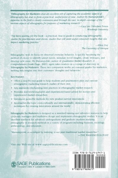 `Ethnography for Marketers does an excellent job of capturing the academic aspects of ethnography but does so from a practical, useful point of view. Author Hy Mariampolski's expertise in the field is clearly communicated through the vast, in-depth coverage of the various aspects of ethnography for purposes of marketing research' - Cara Lee Okleshen Peters, Winthrop University `I've been waiting for this book - a practical, how-to guide to conducting ethnographic studies for practitioners and clients, studies that will yield useful consumer insights that can impact marketing practice' - Ellen Day, The University of Georgia Ethnography, with its focus on observed everyday behavior, is quickly becoming the method of choice to identify unmet needs, stimulate novel insights, create strategies and develop new ideas. Hy Mariampolski, author of Qualitative Market Research: A Comprehensive Guide (Sage, 2001) again takes readers on a voyage of discovery in Ethnography for Marketers. These two companion works are essential guides for marketers seeking rich insights into their customers' thoughts and behaviours. Key Features - Offers a step-by-step guide to help students and practitioners plan and execute ethnographic marketing research studies of their own - Sets standards emphasizing best practices in ethnographic market research - Provides real-world examples and experienced-based advice for novices and experienced market researchers - Introduces powerful methods for new product/service innovations - Approaches the topic cross-culturally and internationally demonstrating effective techniques for creating innovations around the world Ethnography for Marketers is designed as a standard training and reference resource to help corporate managers and marketers design and implement ethnographic studies. It is an excellent textbook for advanced undergraduate and graduate students studying ethnography or research methods in a variety of programs including business, sociology, anthropology and education. `Mariampolski, a sociologist by training, is not your traditional market researcher' - The Washington Post