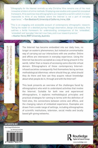The internet has become embedded into our daily lives, no longer an esoteric phenomenon, but instead an unremarkable way of carrying out our interactions with one another. Online and offline are interwoven in everyday experience. Using the internet has become accepted as a way of being present in the world, rather than a means of accessing some discrete virtual domain. Ethnographers of these contemporary Internet-infused societies consequently find themselves facing serious methodological dilemmas: where should they go, what should they do there and how can they acquire robust knowledge about what people do in, through and with the internet?This book presents an overview of the challenges faced by ethnographers who wish to understand activities that involve the internet. Suitable for both new and experienced ethnographers, it explores both methodological principles and practical strategies for coming to terms with the definition of field sites, the connections between online and offline and the changing nature of embodied experience. Examples are drawn from a wide range of settings, including ethnographies of scientific institutions, television, social media and locally based gift-giving networks.
