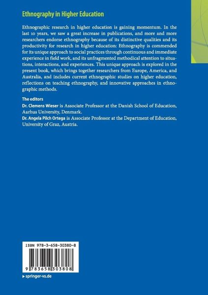 Ethnographic research in higher education is gaining momentum. In the last 10 years, we saw a great increase in publications, and more and more researchers endorse ethnography because of its distinctive qualities and its productivity for research in higher education: Ethnography is commended for its unique approach to social practices through continuous and immediate experience in field work, and its unfragmented methodical attention to situations, interactions, and experiences. This unique approach is explored in the present book, which brings together researchers from Europe, America, and Australia, and includes current ethnographic studies on higher education, reflections on teaching ethnography, and innovative approaches in ethnographic methods.