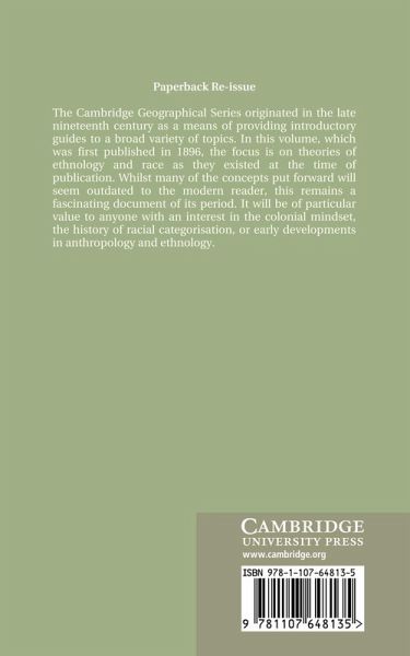 The Cambridge Geographical Series originated in the late nineteenth century as a means of providing introductory guides to a broad variety of topics. In this volume, which was first published in 1896, the focus is on theories of ethnology and race as they existed at the time of publication. Whilst many of the concepts put forward will seem outdated to the modern reader, this remains a fascinating document of its period. It will be of particular value to anyone with an interest in the colonial mindset, the history of racial categorisation, or early developments in anthropology and ethnology.