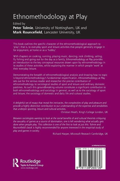 This book outlines the specific character of the ethnomethodological approach to 'play'; that is, to everyday sport and leisure activities that people generally engage in for enjoyment, at home or as a 'hobby'. With chapters on cooking, running, playing music, dancing, rock climbing, sailing, fly fishing and going out for the day as a family, Ethnomethodology at Play provides an introduction to the key conceptual resources drawn upon by ethnomethodology in its studies of these activities, whilst exploring the manner in which people 'work' at their everyday leisure. Demonstrating the breadth of ethnomethodological analysis and showing how no topic is beyond ethnomethodology's fundamental respecification, Ethnomethodology at Play sets out for the serious reader and researcher the precise contribution of ethnomethodology to sociological studies of sport and leisure and ordinary domestic pastimes. As such this groundbreaking volume constitutes a significant contribution to both ethnomethodology and sociology in general, as well as to the sociology of sport and leisure, the sociology of domestic and daily life and cultural studies.