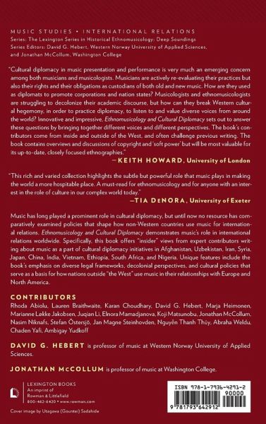 Music has long played a prominent role in cultural diplomacy, but until now no resource has comparatively examined policies that shape how non-western countries use music for international relations. Ethnomusicology and Cultural Diplomacy, edited by scholars David G. Hebert and Jonathan McCollum, demonstrates music's role in international relations worldwide. Specifically, this book offers "insider" views from expert contributors writing about music as a part of cultural diplomacy initiatives in Afghanistan, Uzbekistan, Iran, Syria, Japan, China, India, Vietnam, Ethiopia, South Africa, and Nigeria. Unique features include the book's emphasis on diverse legal frameworks, decolonial perspectives, and cultural policies that serve as a basis for how nations outside "the west" use music in their relationships with Europe and North America.