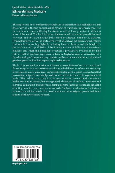 Chapter 1. Introduction.- Part I. The role of natural products and remedies in treating animal diseases.- Chapter 2. The pharmacological and nutritional significance of plant natural products: An alternative for animal health.- Chapter 3. Alternative antimicrobials - medicinal plants and their influences on animal infectious diseases.- Chapter 4. Herbs used for horses in British Columbia and Trinidad and Tobago.- Chapter 5. Plants for controlling parasites in goats.- Chapter 6. Ethnoveterinary practices for control of ticks in Africa.- Part II. Sociological aspects and considerations relating to documentation of ethnoceterinary medicine.- Chapter 7. Gender aspects and multiple contexts in ethnoveterinary practice and science.- Chapter 8. Towards a better understanding of African ethnoveterinary medicine and husbandry.- Part III. Ethnoveterinary medicine around the world.- Chapter 9. Ethnoveterinary medicine and medicinal plants used in the treatment of livestock diseases in Cameroon.-Chapter 10. Ethnoveterinary medicinal plants used in South Africa.- Chapter 11. Ethnoveterinary plants and practices for the control of ticks and tick-borne diseases in South Africa.- Chapter 12. Ethnoveterinary medicine: a Zimbabwean perspective.- Chapter 13. Ethnoveterinary medicine in the Maghreb.- Chapter 14. Natural remedies for animal health in Latin America.- Chapter 15. Local practice of cattle farming and ethnoveterinary medicine in Estonia: case study of Saaremaa and Muhumaa.- Chapter 16. Belarusian ethnoveterinary medicine: ritual practices and traditional remedies.- Chapter 17. The use of medicinal plants for animal health in the Spanish inventory of traditional knowledge.- Index