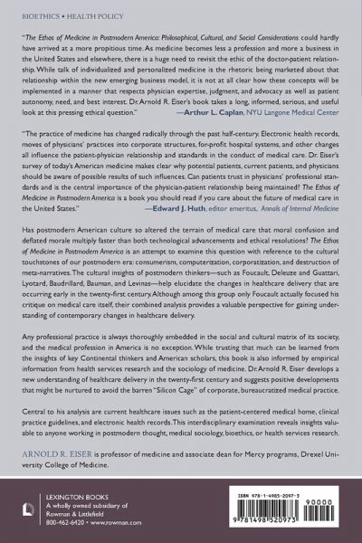 Has postmodern American culture so altered the terrain of medical care that moral confusion and deflated morale multiply faster than both technological advancements and ethical resolutions? The Ethos of Medicine in Postmodern America is an attempt to examine this question with reference to the cultural touchstones of our postmodern era: consumerism, computerization, corporatization, and destruction of meta-narratives. The cultural insights of postmodern thinkers-such as such as Foucault, Deleuze and Guattari, Lyotard, Baudrillard, Bauman, and Levinas-help elucidate the changes in healthcare delivery that are occurring early in the twenty-first century. Although only Foucault among this group actually focused his critique on medical care itself, their combined analysis provides a valuable perspective for gaining understanding of contemporary changes in healthcare delivery. It is often difficult to envision what is happening in the psychosocial, cultural dynamic of an epoch as you experience it. Therefore it is useful to have a technique for refracting those observations through the lens of another system of thought. The prism of postmodern thought offers such a device with which to "view the eclipse" of changing medical practice. Any professional practice is always thoroughly embedded in the social and cultural matrix of its society, and the medical profession in America is no exception. In drawing upon of the insights of key Continental thinkers such and American scholars, this book does not necessarily endorse the views of postmodernism but trusts that much can be learned from their insight. Furthermore, its analysis is informed by empirical information from health services research and the sociology of medicine. Arnold R. Eiser develops a new understanding of healthcare delivery in the twenty-first century and suggests positive developments that might be nurtured to avoid the barren "Silicon Cage" of corporate, bureaucratized medical practice. Central to this analysis are current healthcare issues such as the patient-centered medical home, clinical practice guidelines, and electronic health records. This interdisciplinary examination reveals insights valuable to anyone working in postmodern thought, medical sociology, bioethics, or health services research.