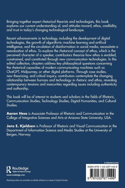 Ethos, Technology, and AI in Contemporary Society explores our current understanding of and attitudes toward ethos, credibility and trust in today's changing technological landscape. The book will be of interest to students and scholars in the fields of Rhetoric, Communication Studies, Technology Studies, and many more.