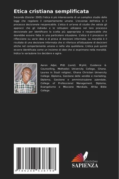 Secondo (Geisler 2005) l'etica è più interessante di un semplice studio delle leggi che regolano il comportamento umano. L'essenza dell'etica è il processo decisionale responsabile. L'etica è un'area di studio che valuta gli approcci che gli individui e le istituzioni utilizzano nel loro processo decisionale per identificare la scelta più appropriata e responsabile che dovrebbe essere fatta in una particolare situazione. L'etica è il processo di riflessione su varie idee e di presa di decisioni informate. La moralità è il risultato di una decisione informata che si riferisce all'attuazione di decisioni etiche nel comportamento umano e nella vita quotidiana. L'etica può quindi essere identificata come un insieme di idee che si esprimono nella moralità. Indica la variazione tra decidere e agire.