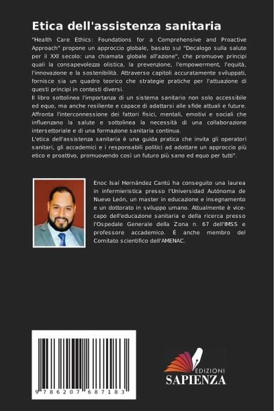 "Health Care Ethics: Foundations for a Comprehensive and Proactive Approach" propone un approccio globale, basato sul "Decalogo sulla salute per il XXI secolo: una chiamata globale all'azione", che promuove principi quali la consapevolezza olistica, la prevenzione, l'empowerment, l'equità, l'innovazione e la sostenibilità. Attraverso capitoli accuratamente sviluppati, fornisce sia un quadro teorico che strategie pratiche per l'attuazione di questi principi in contesti diversi.Il libro sottolinea l'importanza di un sistema sanitario non solo accessibile ed equo, ma anche resiliente e capace di adattarsi alle sfide attuali e future. Affronta l'interconnessione dei fattori fisici, mentali, emotivi e sociali che influenzano la salute e sottolinea la necessità di una collaborazione intersettoriale e di una formazione sanitaria continua.L'etica dell'assistenza sanitaria è una guida pratica che invita gli operatori sanitari, gli accademici e i responsabili politici ad adottare un approccio più etico e proattivo, promuovendo così un futuro più sano ed equo per tutti".