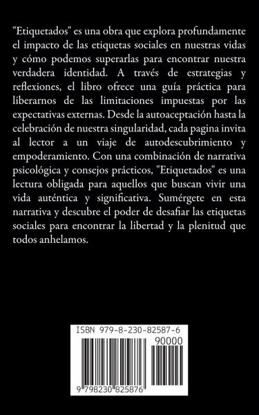 "Etiquetados" es una obra que explora profundamente el impacto de las etiquetas sociales en nuestras vidas y cómo podemos superarlas para encontrar nuestra verdadera identidad. A través de estrategias y reflexiones, el libro ofrece una guía práctica para liberarnos de las limitaciones impuestas por las expectativas externas. Desde la autoaceptación hasta la celebración de nuestra singularidad, cada pagina invita al lector a un viaje de autodescubrimiento y empoderamiento. Con una combinación de narrativa psicológica y consejos prácticos, "Etiquetados" es una lectura obligada para aquellos que buscan vivir una vida auténtica y significativa. Sumérgete en esta narrativa y descubre el poder de desafiar las etiquetas sociales para encontrar la libertad y la plenitud que todos anhelamos.