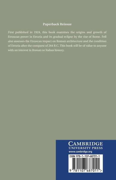 First published in 1924, this book examines the origins and growth of Etruscan power in Etruria and its gradual eclipse by the rise of Rome. Fell also assesses the Etruscan impact on Roman architecture and the condition of Etruria after the conquest of 264 BC. This book will be of value to anyone with an interest in Roman or Italian history.