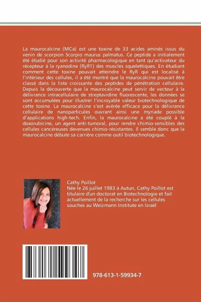 La maurocalcine (MCa) est une toxine de 33 acides aminés issus du venin de scorpion Scorpio maurus palmatus. Ce peptide a initialement été étudié pour son activité pharmacologique en tant qu'activateur du récepteur à la ryanodine (RyR1) des muscles squelettiques. En étudiant comment cette toxine pouvait atteindre le RyR qui est localisé à l'intérieur des cellules, il a été montré que la maurocalcine pouvait être classé dans la liste croissante des peptides de pénétration cellulaire. Depuis la découverte que la maurocalcine peut servir de vecteur à la délivrance intracellulaire de streptavidine fluorescente, les données se sont accumulées pour illustrer l'incroyable valeur biotechnologique de cette toxine. La maurocalcine s'est avérée efficace pour la délivrance cellulaire de nanoparticules ouvrant ainsi une myriade possible d'applications high-tech. Enfin, la maurocalcine a été couplé à la doxorubicine, un agent anti-tumoral, pour rendre chimio-sensibles des cellules cancéreuses devenues chimio-résistantes. Il semble donc que la maurocalcine débute sa carrière comme outil biotechnologique.