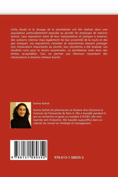 Cette étude et le dosage de la plombémie ont été réalisés dans une population particulièrement exposée au plomb: les employés de stations service. Leur exposition vient de leur manipulation et pompes à essence, des camions citernes mais également de leur proximité de la route et des gaz toxiques. Les expositions cutanées et respiratoires laissant présager une intoxication importante au plomb, leur plomémie a été évaluée. Les résultats sont pour le moins surprenants. La plombémie reste dans des limites acceptables. Ceci ne permet pas d'exclure cependant des intoxications à d'autres métaux lourds.