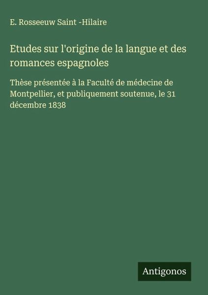 Réimpression inchangée de l'édition originale de 1838. La maison d'édition Antigonos est spécialisée dans la publication de réimpressions de livres historiques. Nous veillons à ce que ces ouvrages soient mis à la disposition du public dans de bonnes conditions afin de préserver leur patrimoine culturel.