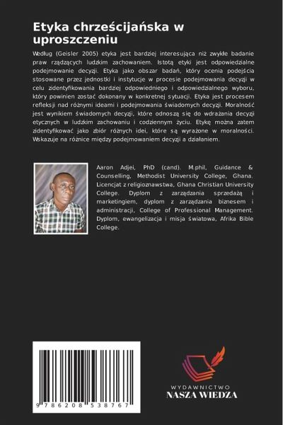 Wed¿ug (Geisler 2005) etyka jest bardziej interesuj¿ca ni¿ zwyk¿e badanie praw rz¿dz¿cych ludzkim zachowaniem. Istot¿ etyki jest odpowiedzialne podejmowanie decyzji. Etyka jako obszar badä, który ocenia podej¿cia stosowane przez jednostki i instytucje w procesie podejmowania decyzji w celu zidentyfikowania bardziej odpowiedniego i odpowiedzialnego wyboru, który powinien zostä dokonany w konkretnej sytuacji. Etyka jest procesem refleksji nad ró¿nymi ideami i podejmowania ¿wiadomych decyzji. Moralno¿¿ jest wynikiem ¿wiadomych decyzji, które odnosz¿ si¿ do wdräania decyzji etycznych w ludzkim zachowaniu i codziennym ¿yciu. Etyk¿ mo¿na zatem zidentyfikowä jako zbiór ró¿nych idei, które s¿ wyräone w moralno¿ci. Wskazuje na ró¿nice mi¿dzy podejmowaniem decyzji a dziäaniem.