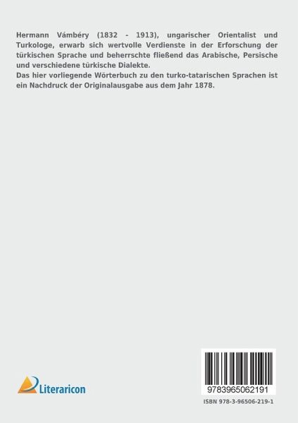 Das hier vorliegende Wörterbuch zu den turko-tatarischen Sprachen ist ein Nachdruck der Originalausgabe aus dem Jahr 1878.
