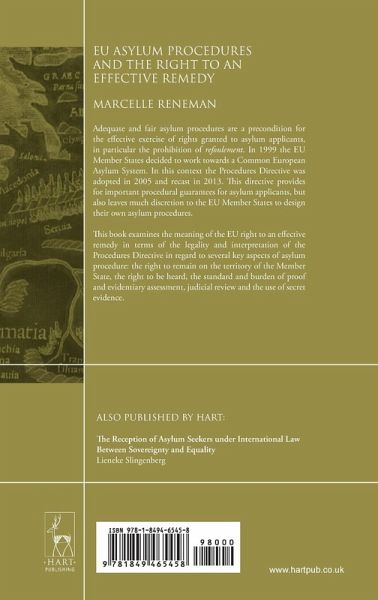 Adequate and fair asylum procedures are a precondition for the effective exercise of rights granted to asylum applicants, in particular the prohibition of refoulement. In 1999 the EU Member States decided to work towards a Common European Asylum System. In this context the Procedures Directive was adopted in 2005 and recast in 2013. This directive provides for important procedural guarantees for asylum applicants, but also leaves much discretion to the EU Member States to design their own asylum procedures. This book examines the meaning of the EU right to an effective remedy in terms of the legality and interpretation of the Procedures Directive in regard to several key aspects of asylum procedure: the right to remain on the territory of the Member State, the right to be heard, the standard and burden of proof and evidentiary assessment, judicial review and the use of secret evidence.