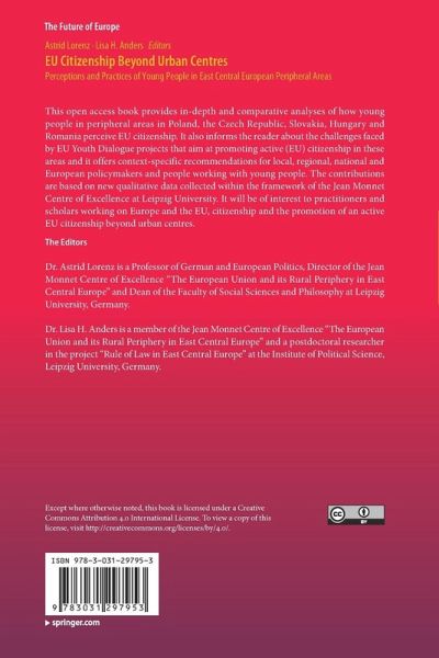 This open access book provides in-depth and comparative analyses of how young people in peripheral areas in Poland, the Czech Republic, Slovakia, Hungary and Romania perceive EU citizenship. It also informs the reader about the challenges faced by EU Youth Dialogue projects that aim at promoting active (EU) citizenship in these areas and it offers context-specific recommendations for local, regional, national and European policymakers and people working with young people. The contributions are based on new qualitative data collected within the framework of the Jean Monnet Centre of Excellence at Leipzig University. It will be of interest to practitioners and scholars working on Europe and the EU, citizenship and the promotion of an active EU citizenship beyond urban centres.