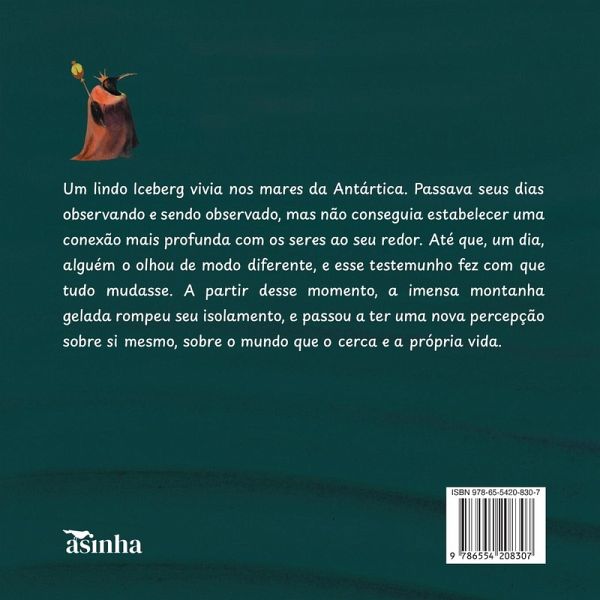 Um lindo Iceberg vivia nos mares da Antártica. Passava seus dias observando e sendo observado, mas não conseguia estabelecer uma conexão mais profunda com os seres ao seu redor. Até que, um dia, alguém o olhou de modo diferente, e esse testemunho fez com que tudo mudasse. A partir desse momento, a imensa montanha gelada rompeu seu isolamento, e passou a ter uma nova percepção sobre si mesmo, sobre o mundo que o cerca e a própria vida.