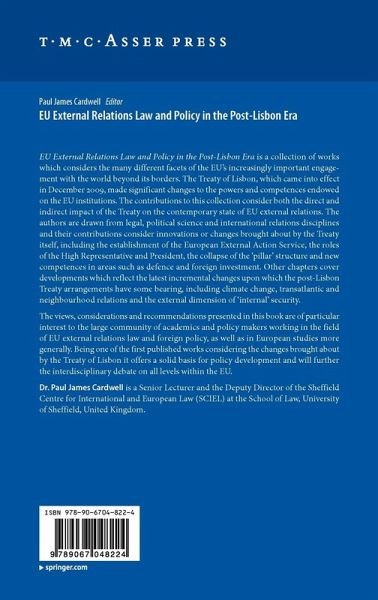 This is a collection of works which considers the many different facets of the EU's increasingly important engagement with the world beyond its borders. The Treaty of Lisbon marked a change in the powers and competences endowed on the EU - the contributions to this collection consider both the direct and indirect impact of the Treaty on the contemporary state of EU external relations. The authors are drawn from legal, political science and international relations disciplines and consider innovations or changes brought about by the Treaty itself: the European External Action Service, the roles of the High Representative and President, the collapse of the 'pillar' structure and new competences such as those for foreign investment. Other chapters cover developments which reflect the latest incremental changes upon which the post-Lisbon Treaty arrangements have some bearing, including the COREU network, the transatlantic and neighbourhood relations and the external dimension of 'internal'security. Useful for academics working in the field of EU external relations law and foreign policy, as well as the EU law/politics/European studies market more generally.