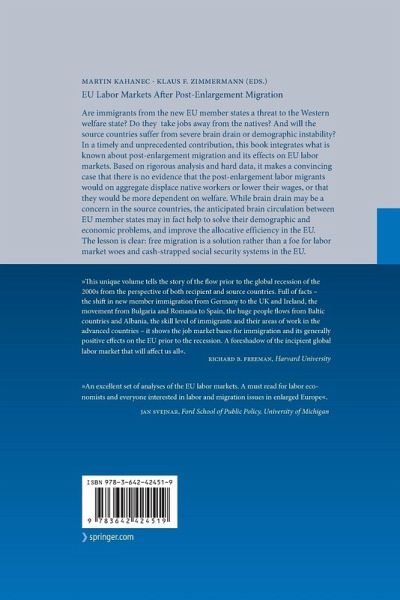 Are immigrants from the new EU member states a threat to the Western welfare state? Do they take jobs away from the natives? And will the source countries suffer from severe brain drain or demographic instability? In a timely and unprecedented contribution, this book integrates what is known about post-enlargement migration and its effects on EU labor markets. Based on rigorous analysis and hard data, it makes a convincing case that there is no evidence that the post-enlargement labor migrants would on aggregate displace native workers or lower their wages, or that they would be more dependent on welfare. While brain drain may be a concern in the source countries, the anticipated brain circulation between EU member states may in fact help to solve their demographic and economic problems, and improve the allocative efficiency in the EU. The lesson is clear: free migration is a solution rather than a foe for labor market woes and cash-strapped social security systems in the EU.