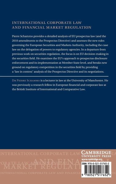 Pierre Schammo provides a topical analysis of EU prospectus law (including the 2010 amendments to the Prospectus Directive) and the new rules governing the European Securities and Markets Authority. He also breaks new ground on regulatory competition by offering a contextual analysis of the negotiations of the Prospectus Directive.